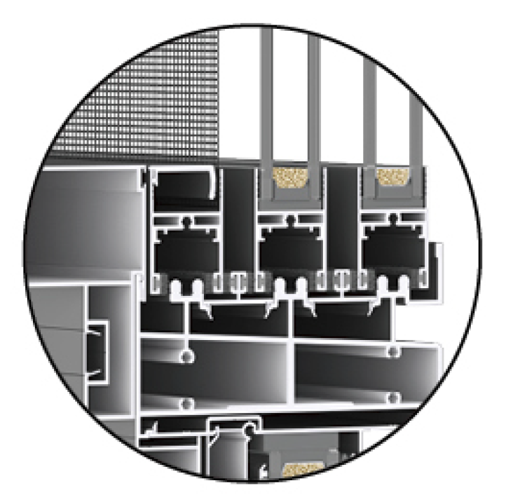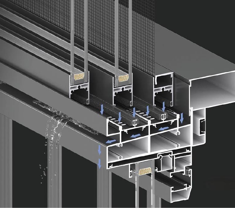 -A floor drain-type drainage system with multiple seals to prevent rainwater backflow adopted. The lower rail has a load-bearing wall thickness of 3.0mm, making it resistant to wind and rain.