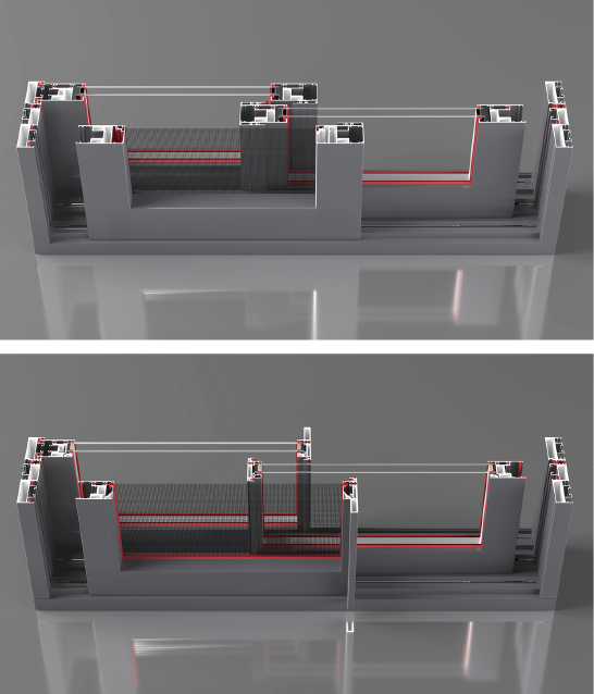 -PA66GF25 high-strength thermal insulation strip provides superior heat insulation and preservation. Noise-reducing strip eliminates vibration noise between the steel mesh and the profile.
