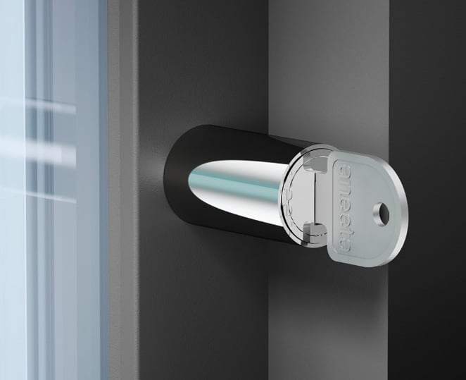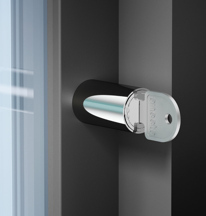 Lock and key as standard, with sleek, black key cap option to conceal the lock, whereby the key is integrated within.