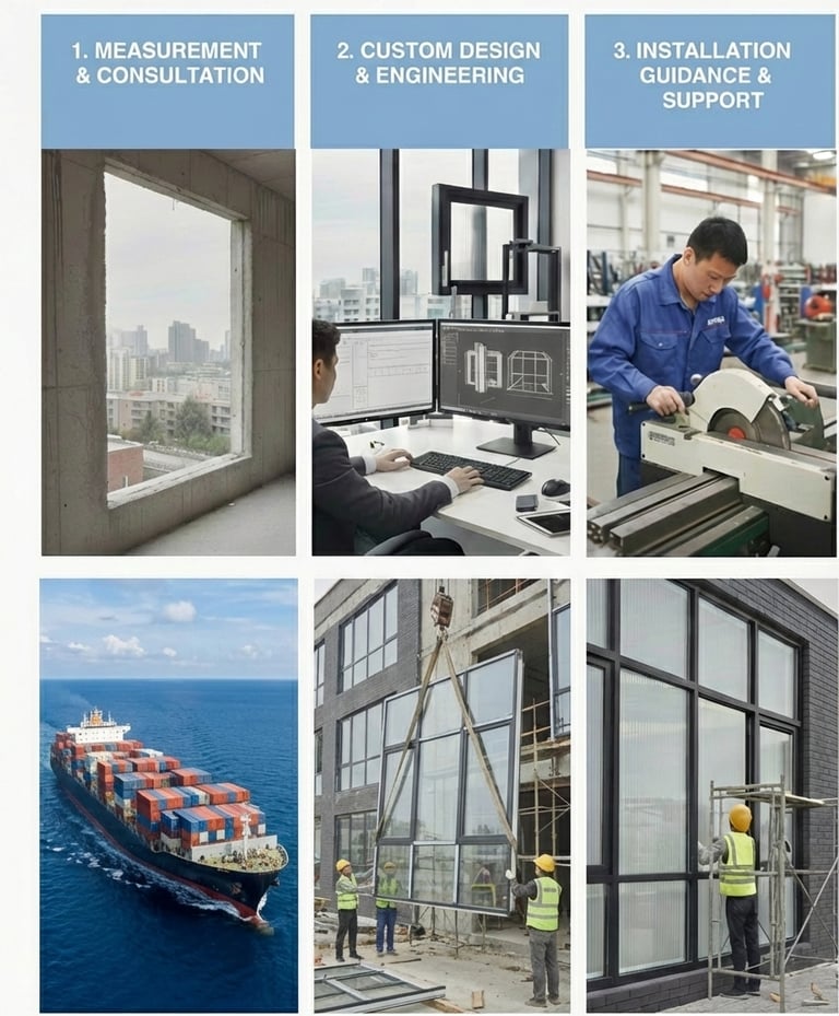 For overseas projects,we quote, measure,manufacture and provide onsite Installation technical support