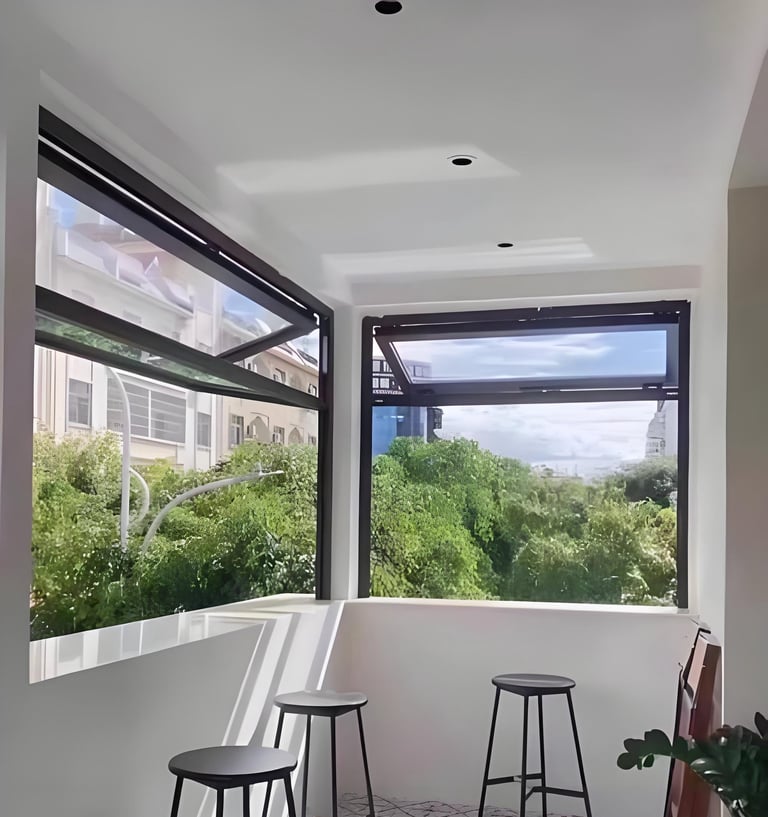 It is a new type of window that combines the features of sliding windows and casement windows. Its main advantages are in ventilation, lighting, sealing, and space utilization.Electric opening also available.